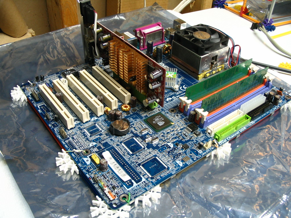 A view of the underside where I used wire to securely tie the motherboard in place.