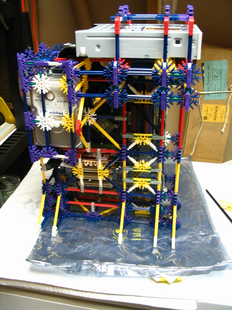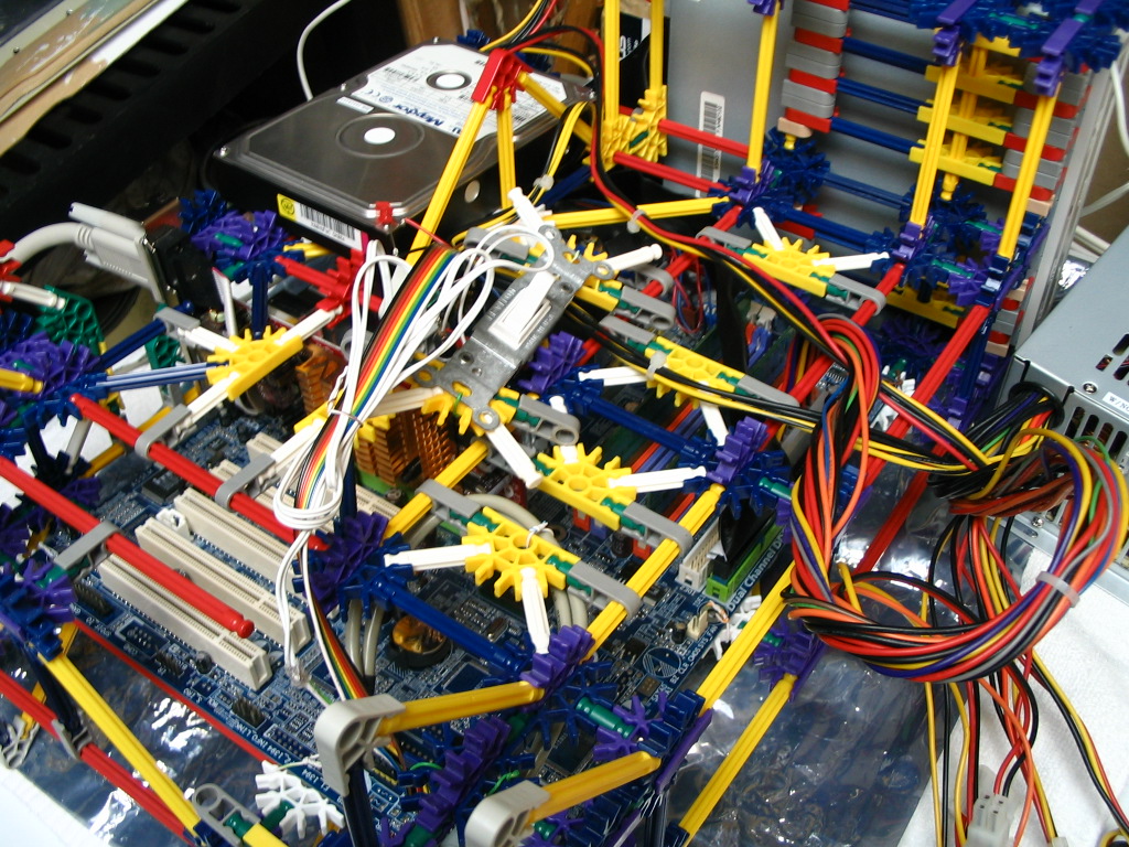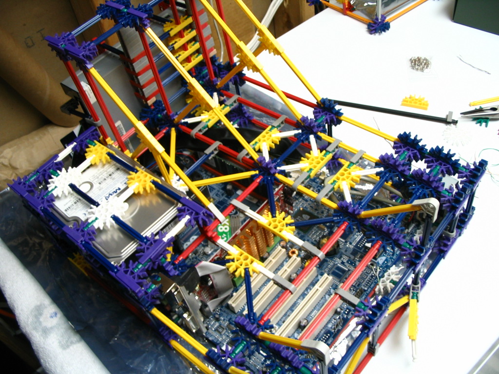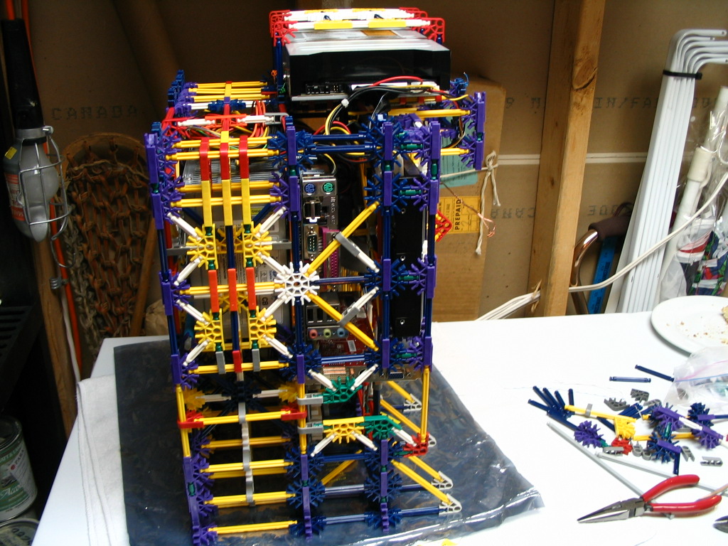 I improvised and constructed the chassis entirely out of K'nex over a span of about 3 days and even did a few upgrades some time after, including upgrading the RAM, hard drive, CD to DVD drive & added a wireless card.