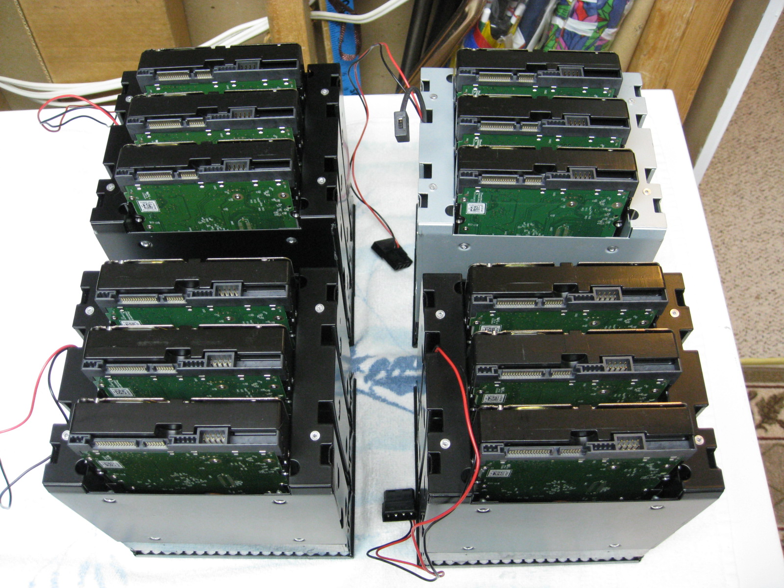 SuperServer is the nickname for my 40 TB personal data storage server, currently running in RAID 6 with an Adaptec 71605 RAID card on kubuntu 10.14. This baby can pretty much download the internet!