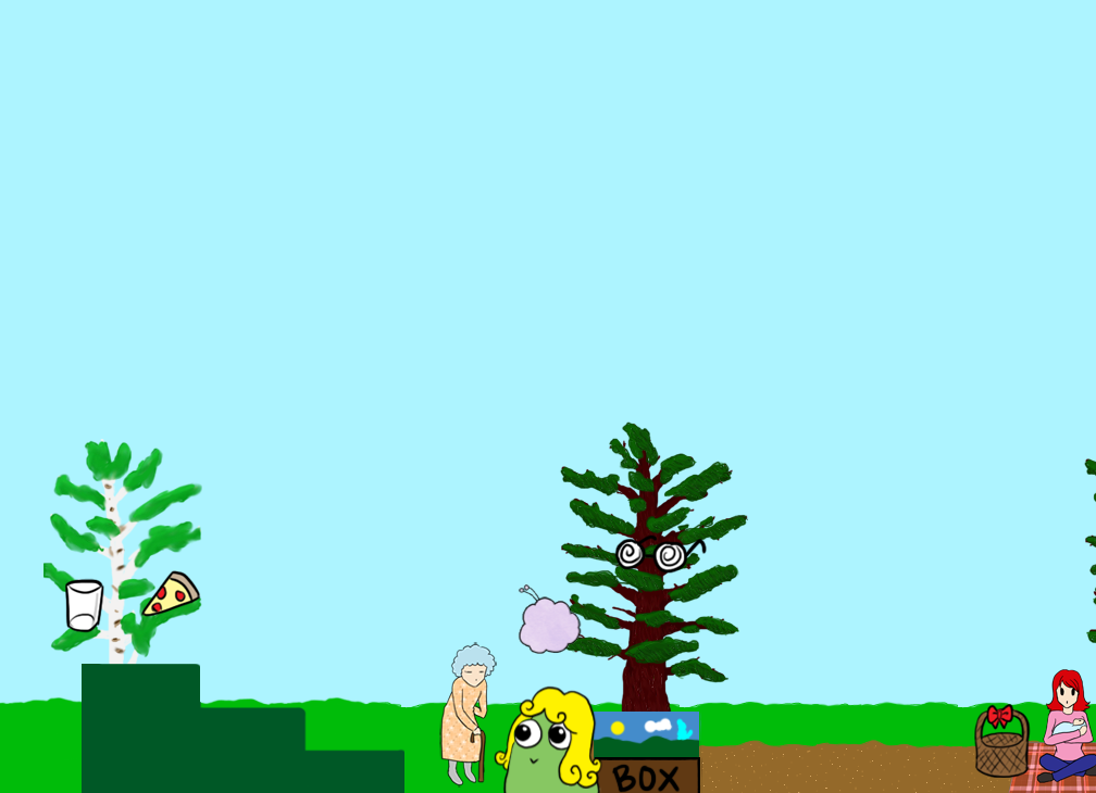 It is a 2D sidescrolling open world platformer where the main character is an alien that has crash landed his ship on Earth and must attempt to repair it. The player would be freely able to switch between different areas through doorways and such, and there would be an inventory system for storing items you find in the world. The game would also be quest driven in which you must interact with humans to complete your tasks, and would be open to alternate endings.