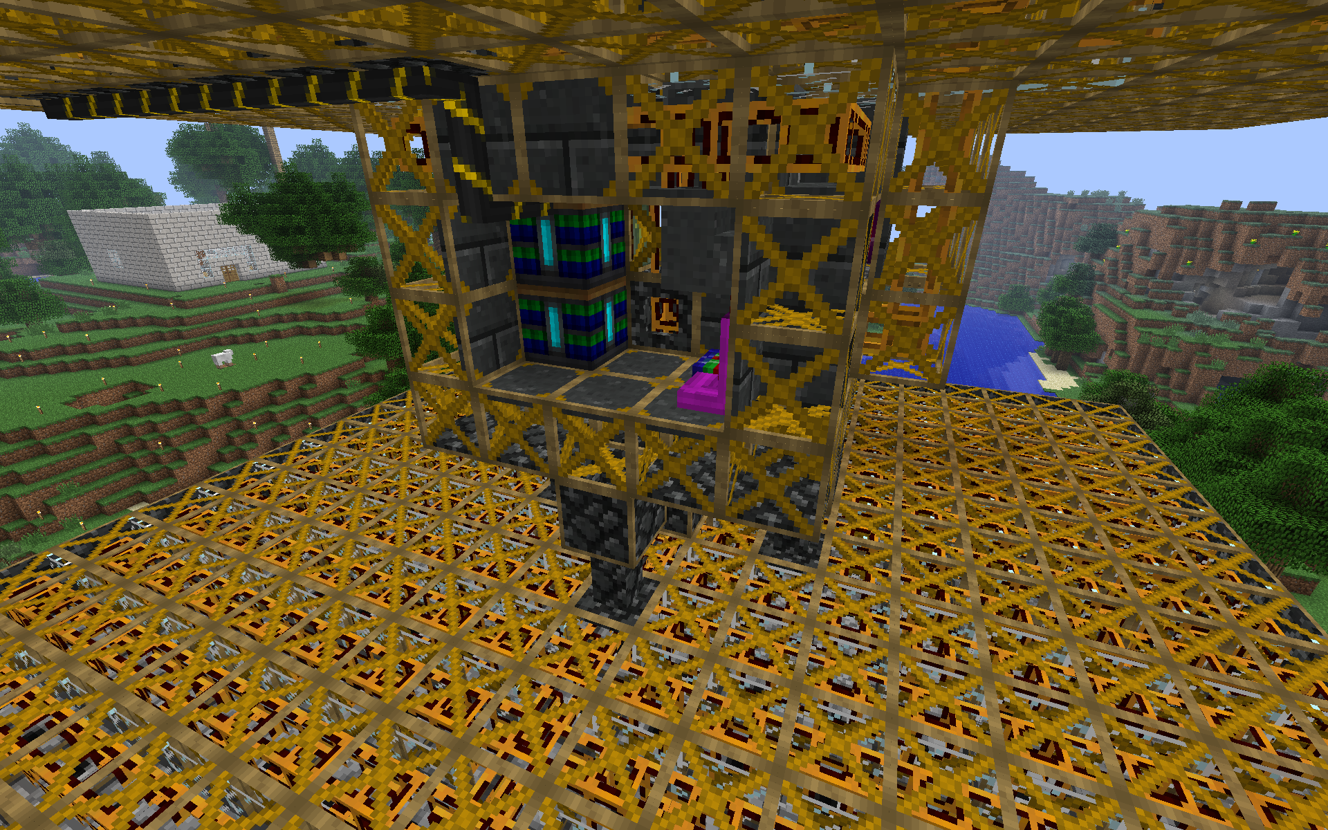 A horizontal windmill on our server, made out of RedPower2 microblocks by a friend. Works best when it's storming outside!
