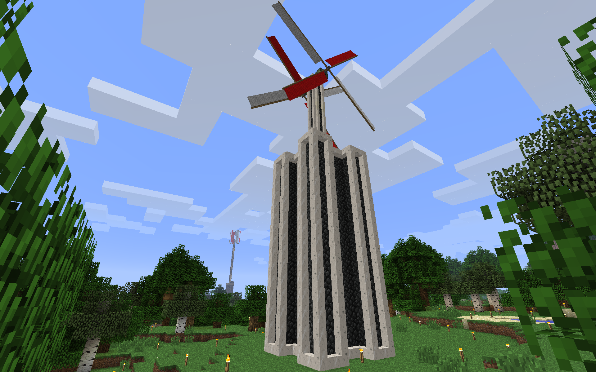 A vertical variation of the windmill, made from RedPower2 microblocks made by the same friend.