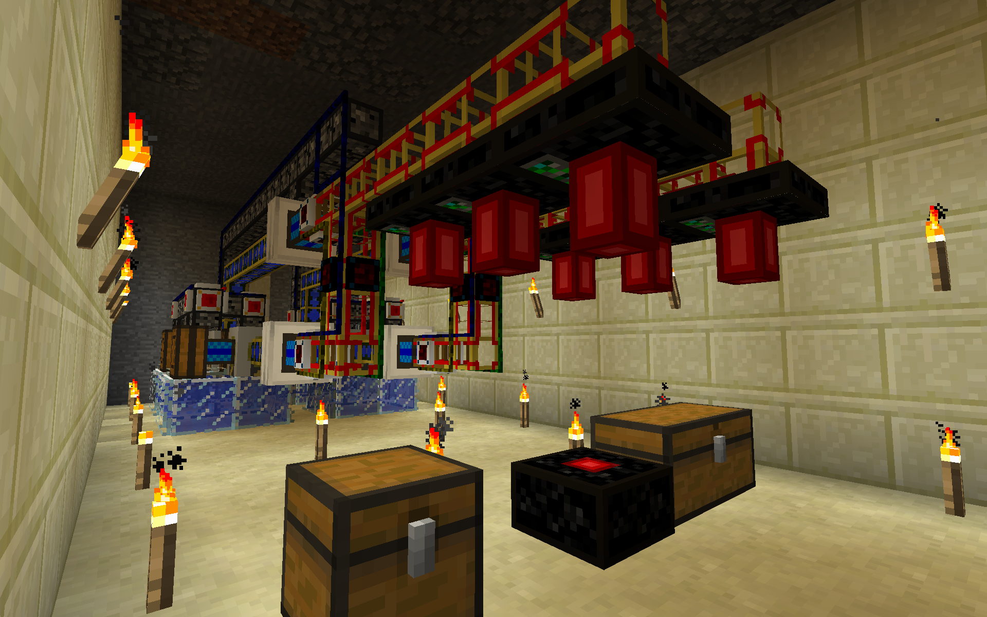 Some screenshots of various creations on my AwesomeCraft server are featured below! Should give you a pretty good idea of some of the awesome stuff you can build with RedPower2 in survival mode (without cheating). Pretty much every complicated system was created from scratch by myself, all original designs (with the exception of the minecart dispenser).