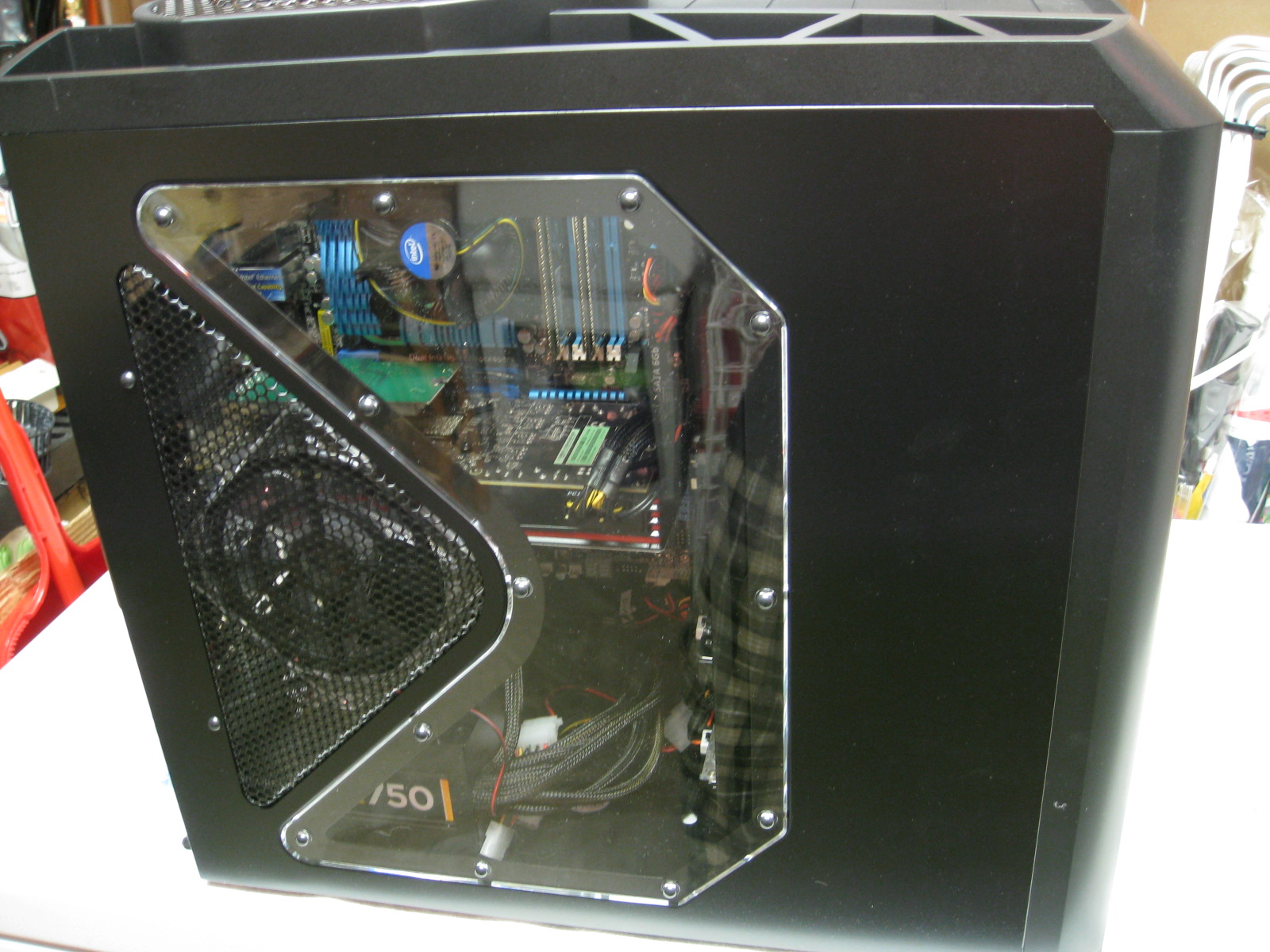 I upgraded a number of things since I took the pictures from its initial build. It used to have an Intel i7 2600k, ASUS ATI 6870 HD, (4x) 4 GB Corsair Vengeance LP PC3-12800 and a Corsair TX750 V2.