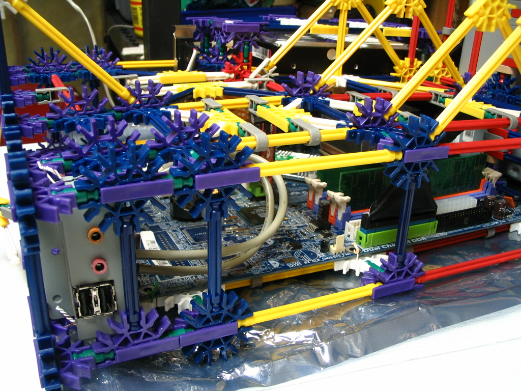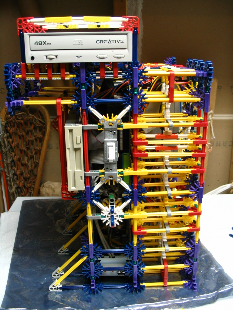 I improvised and constructed the chassis entirely out of K'nex over a span of about 3 days and even did a few upgrades some time after, including upgrading the RAM, hard drive, CD to DVD drive & added a wireless card.