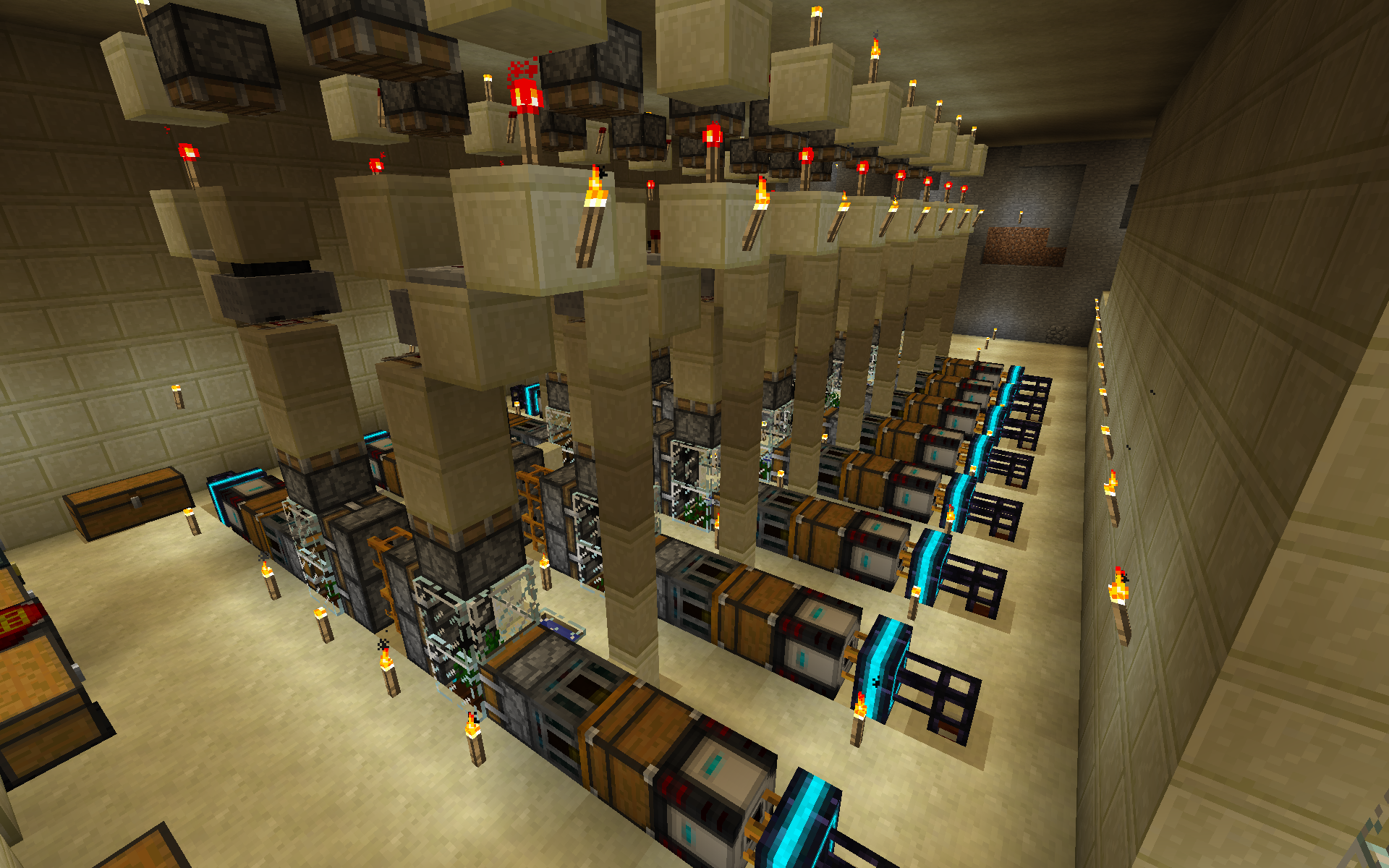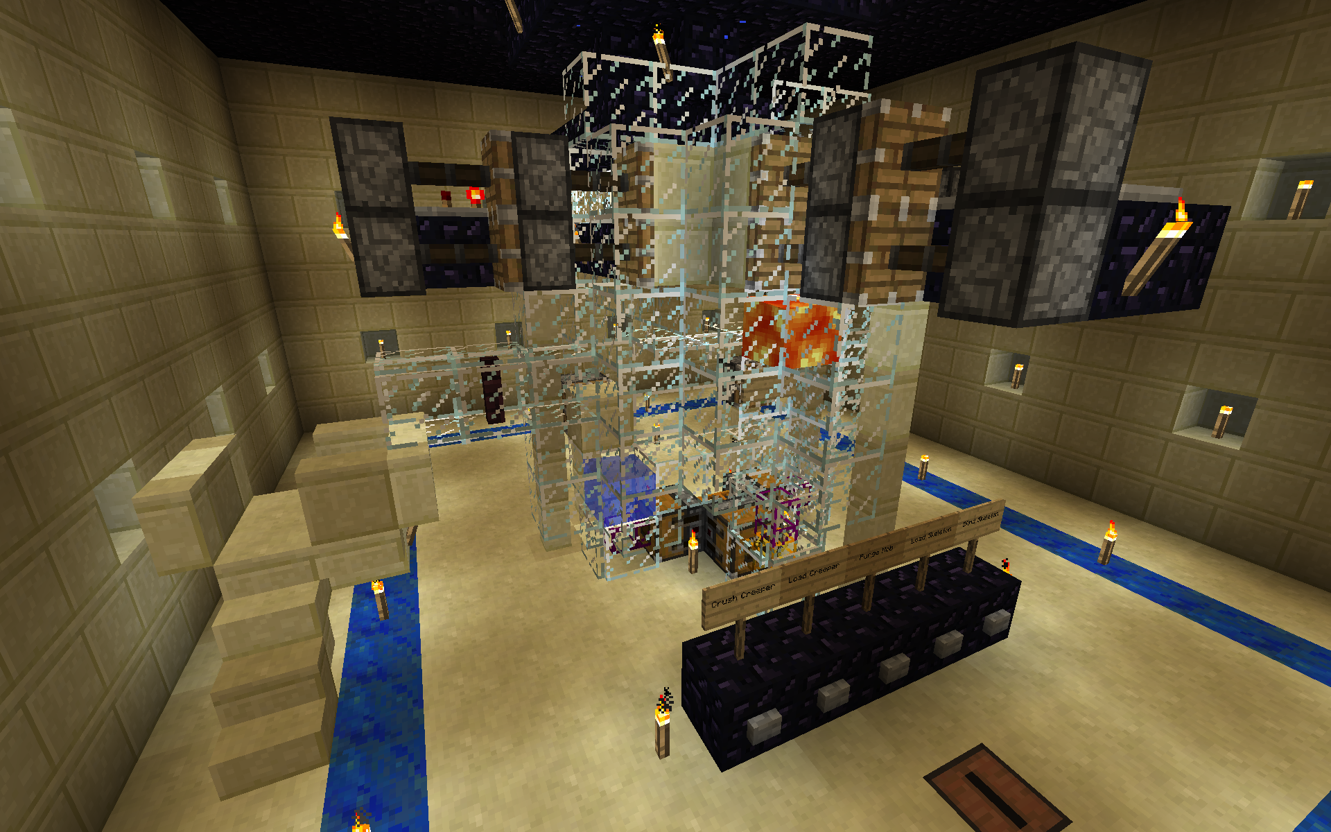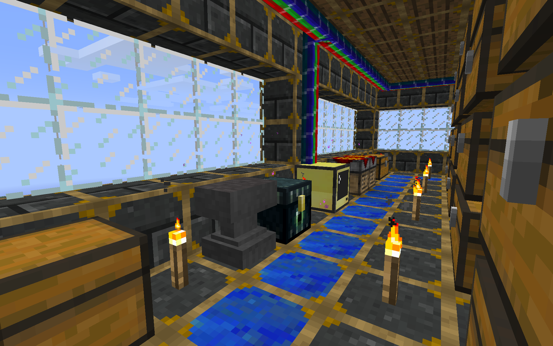 This room is used for safely manufacturing gates for BuildCraft stuff. Fully automated & hands free, turns on if there is work queued / off if it overheats or completes all tasks.