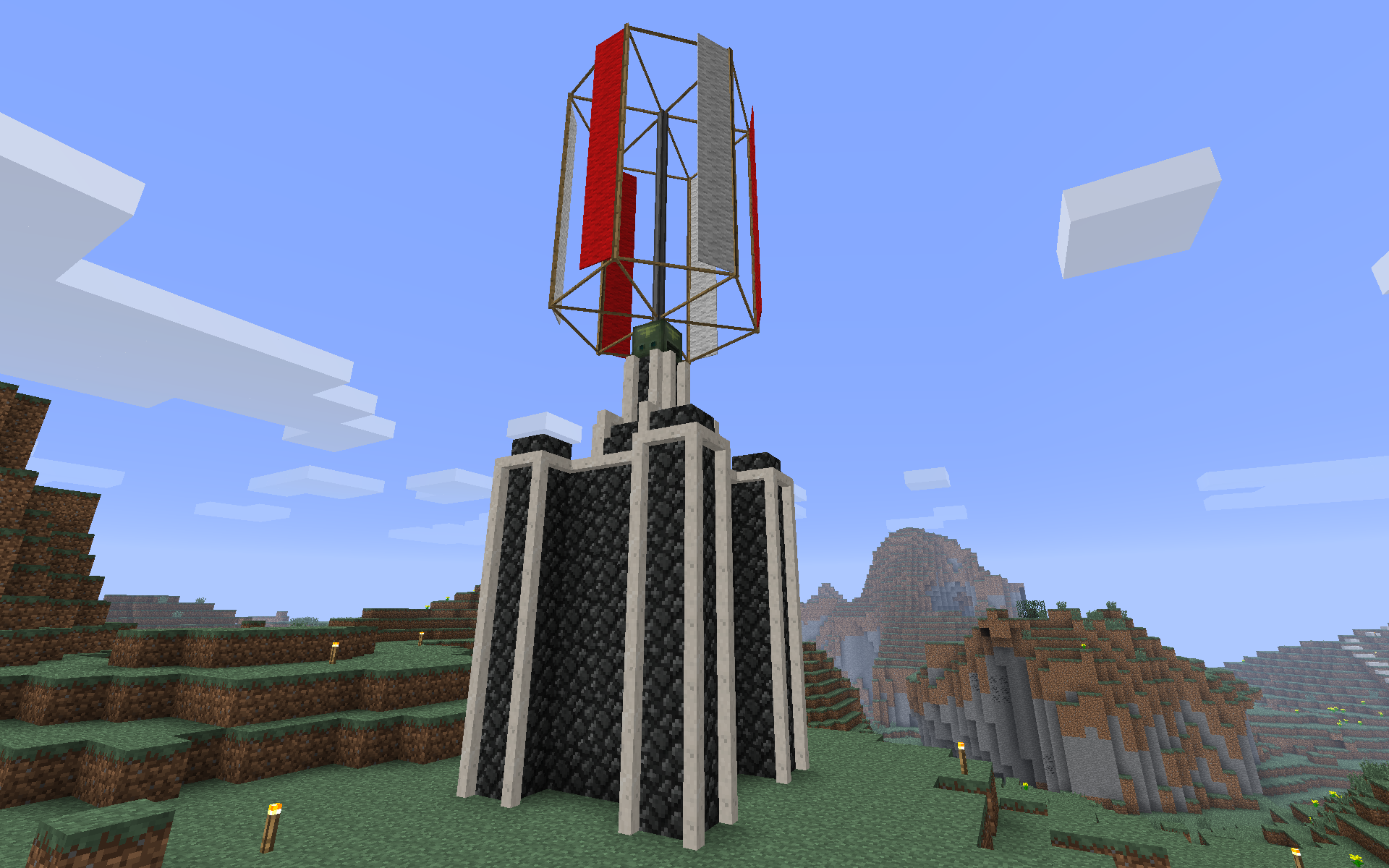 A vertical variation of the windmill, made from RedPower2 microblocks made by the same friend.