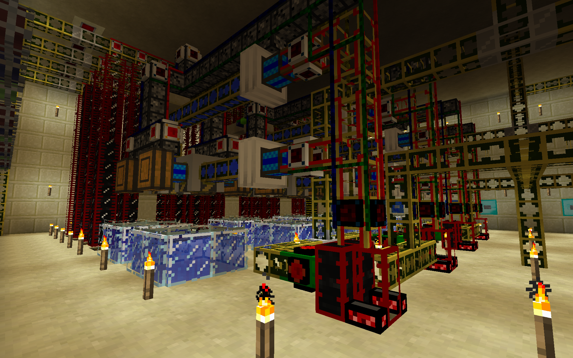 Some screenshots of various creations on my AwesomeCraft server are featured below! Should give you a pretty good idea of some of the awesome stuff you can build with RedPower2 in survival mode (without cheating). Pretty much every complicated system was created from scratch by myself, all original designs (with the exception of the minecart dispenser).