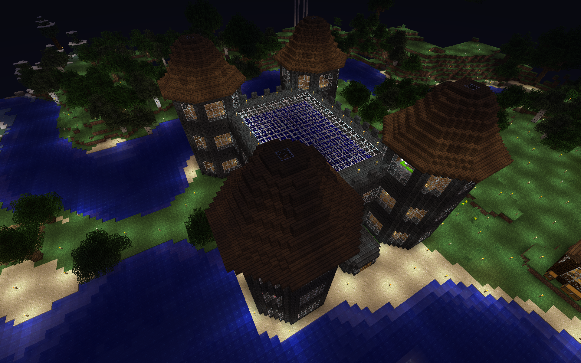 An overhead view of our castle, complete with a massive solar panel array on the roof for additional power generation.