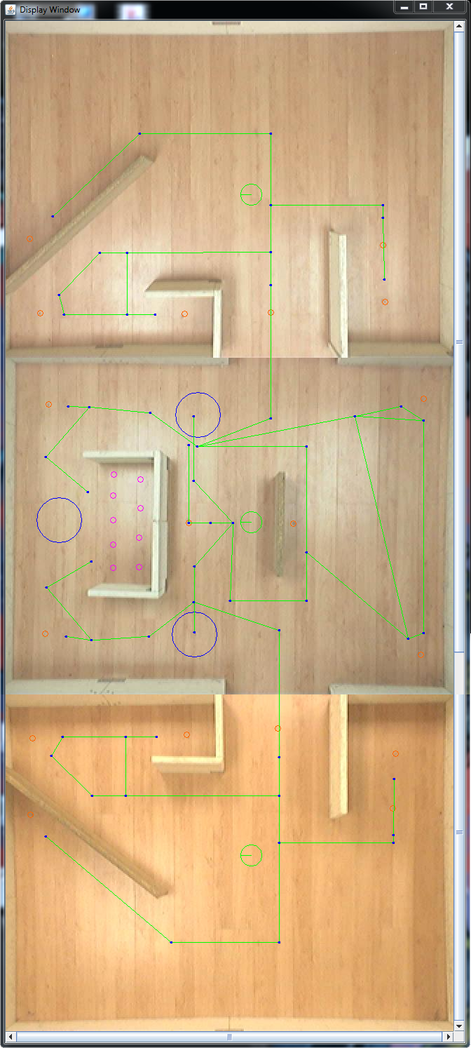 All in all the software system is completely functional and more advanced than any other project our class had produced, and would work perfectly if only a single robot was functioning at any given time. However, when we tied in multiple robots, performance would rapidly degrade to the point that robots would be crashing into walls and ignoring objectives entirely. This however, was not our fault and was in fact the fault of the intermediary software which was responsible for updating our software with the robot's position on regular intervals. Once multiple robots were involved it would only occasionally send position updates over the network randomly at best, so most of the time our software had no idea where the robots actually were. Furthermore, the software was flawed in the sense that it had a bug that was never fixed that would corrupt transmission of network data related to the position of the robot, so that bits would be flipped and the data would sometimes be wrong. Coupled with countless other software and hardware issues, this project was a big pain in the ass, and we regrettably never got to see it work fully. We did test our code on each individual robot in a local testing environment and everything worked just fine, so I'm sure if the robot tracking software was properly functioning everything would have gone according to plan.